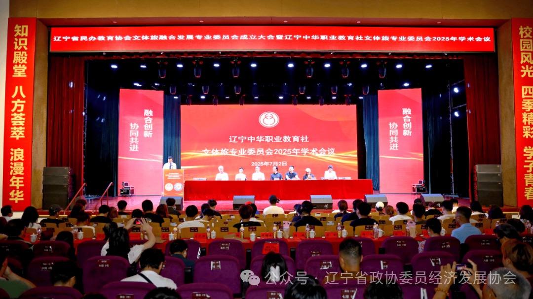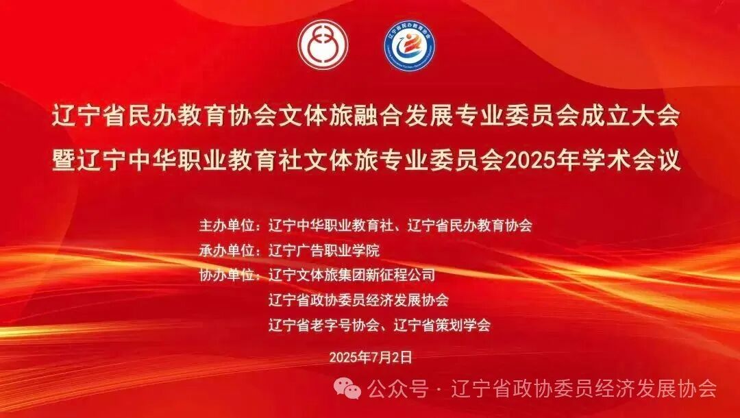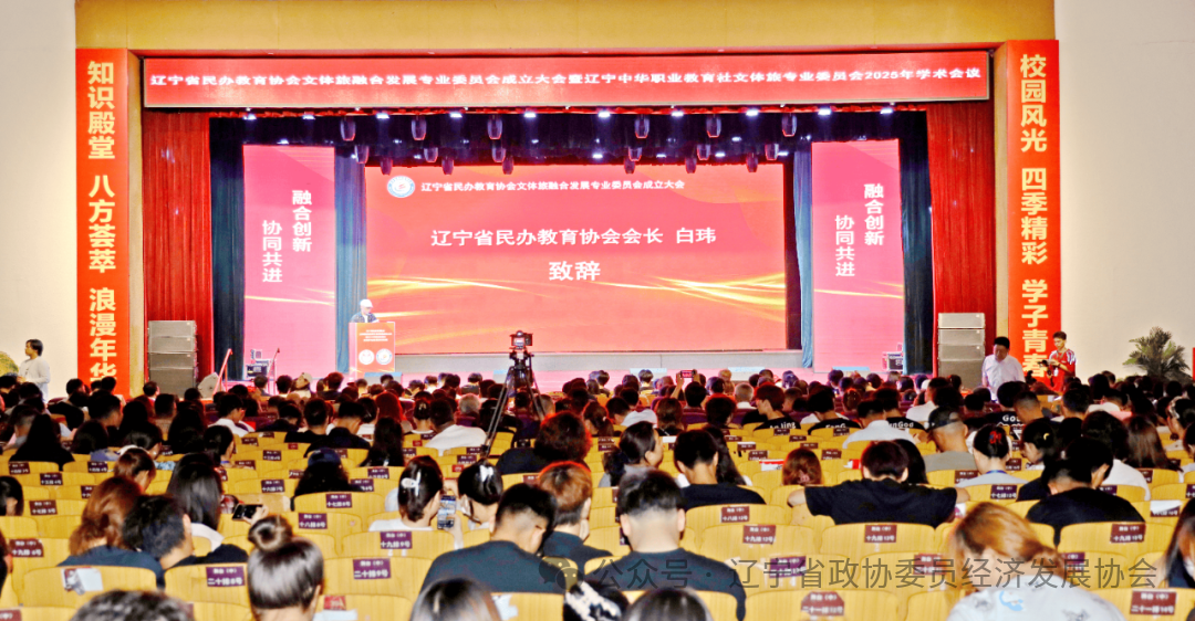 2025年7月2日,为贯彻落实国家关于民办教育高质量发展的政策要求,充分发挥辽宁文化、体育、旅游产业与教育深度融合的协同效应,进一步促进文体旅与教育事业的深度结合,共同助力辽宁强省建设。协会作为协办单位参加辽宁省民办教育协会文体旅融合发展专业委员会成立大会暨辽宁中华职教社文体旅专业委员会2025 年学术会议在辽宁广告职业学院召开。协会会长吴刚带队,协会办公室徐畅主任,协会成员李贵、曾祥忠、樊星、霍然等来自全国25个省市的75所院校校长、企业家和15个行业协会的专家、学者,共计256位代表齐聚一