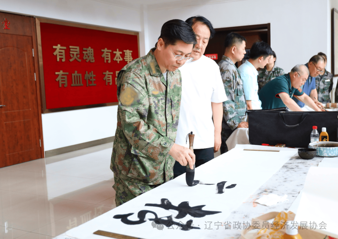 在中国人民解放军建军 98 周年即将到来之际,辽宁省政协委员经济发展协会党支部书记张世平于 7 月 24 日率协会10余位会员书画家,携手沈阳军旅书画研究会、辽宁省硬笔书法家协会、辽宁省教育装备行业协会,共同走进驻军某部,开展了一场意义非凡的“喜迎建军节·文化进军营”国防讲座暨书画创作慰问活动。