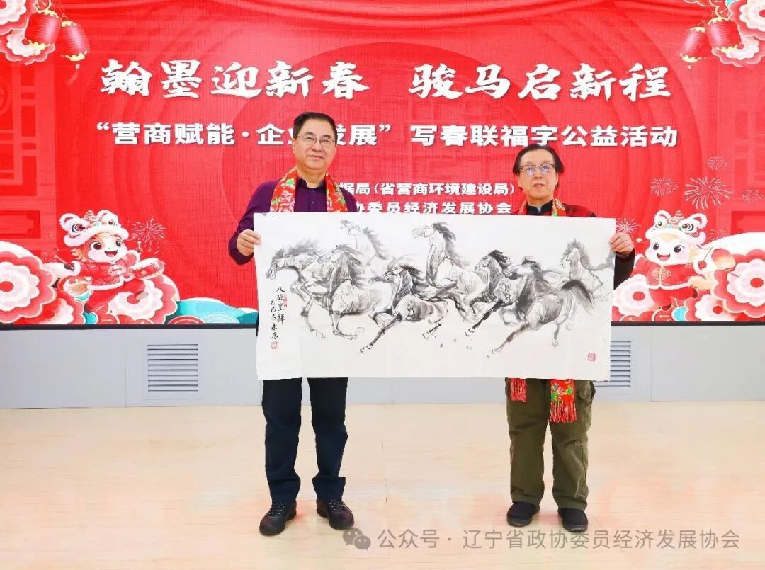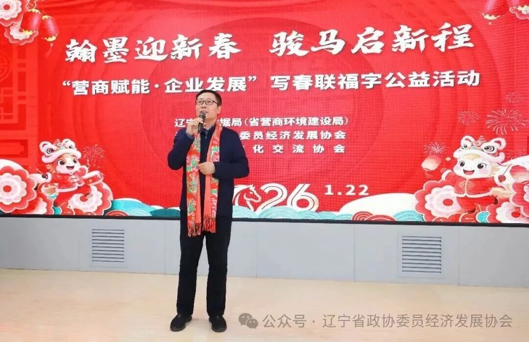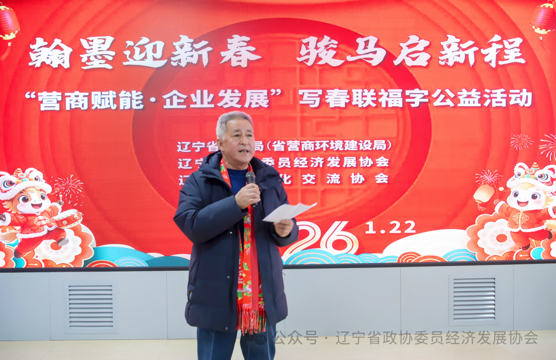 随着辽宁省政协原副秘书长、农业农村委员会原主任尹学义一声洪亮宣布——“活动正式开始”,红纸铺展、祥龙笔舞;一副副春联写满祝愿,一张张“福”字承载希望,为企业添动力、为群众增喜气、为辽宁营商环境升温度,也为即将到来的农历新年写下“辽”韵悠长的序章。