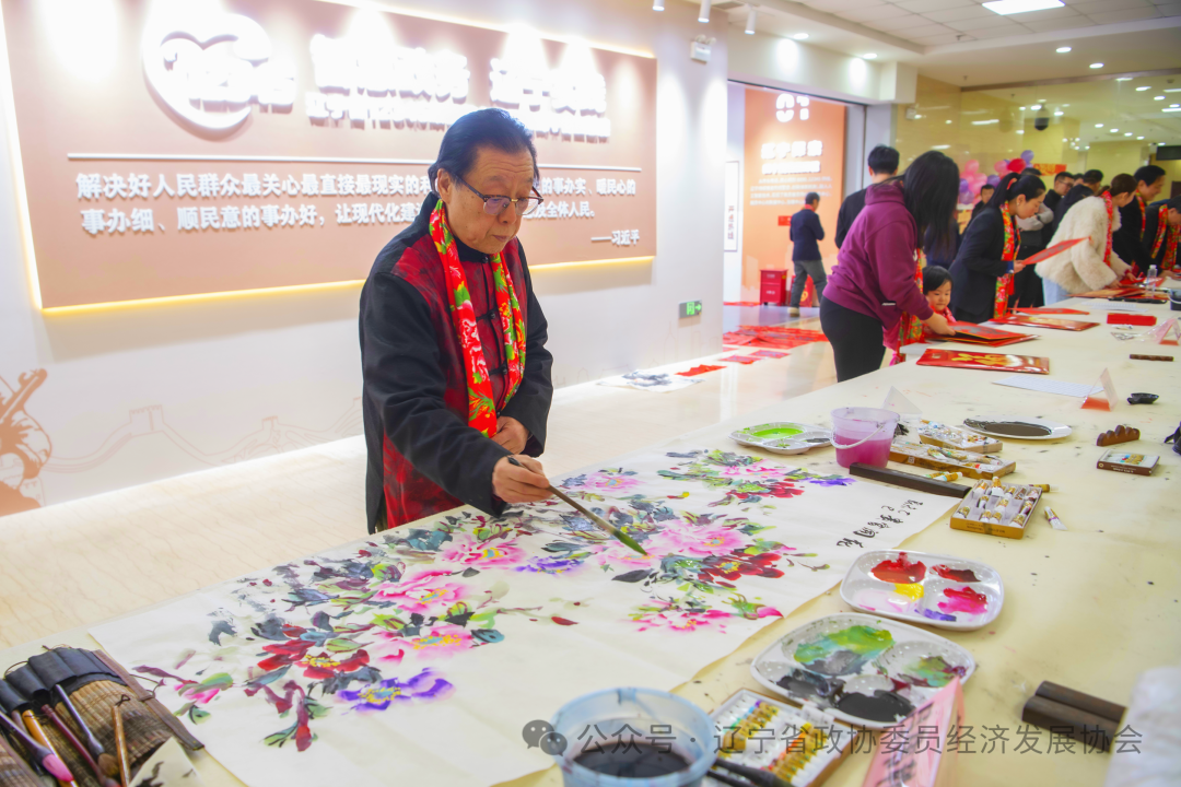 辽宁省政协委员经济发展协会党支部书记张世平深情寄语:我们以书画为媒,为企业送福、为发展聚力,让中华优秀传统文化在笔墨间“活”起来,更以文化润企、党建暖企的方式,把党的温度传递到生产线、项目一线、发展前线,让政企同心的涓涓细流汇聚成推动辽宁全面振兴的澎湃动能。